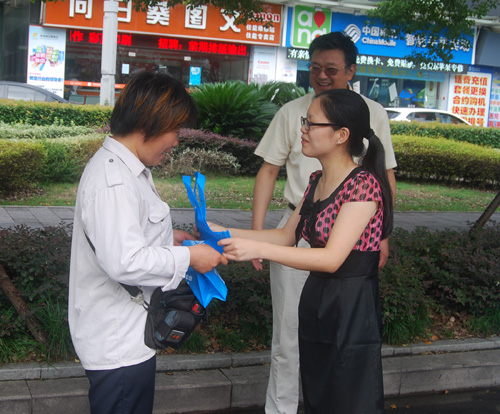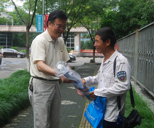 | 杭州仁本為停車收費員定期送防暑物品 |