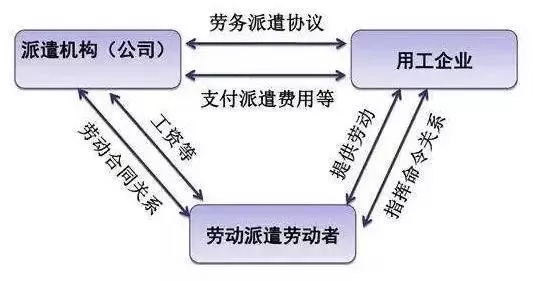 勞務(wù)派遣是指由派遣單位與派遣勞工訂立勞動合同,由派遣勞工向要派企業(yè)給付勞務(wù),勞動合同關(guān)系存在于派遣機構(gòu)與派遣勞工之間,但勞動力給付的事實則發(fā)生于派遣勞工與要派企業(yè)之間。勞務(wù)派遣最顯著特征就是勞動力的雇用和使用相分離。 勞務(wù)派遣的三方法律關(guān)系 1、勞務(wù)派遣單位與被派遣勞動者之間的關(guān)系 在勞務(wù)派遣用工形式下,勞動者與勞務(wù)派遣單位簽訂勞動合同,雙方建立勞動關(guān)系。根據(jù)《勞動合同法》第五十八條“勞務(wù)派遣單位是本法所稱用人單位,應(yīng)履行用人單位對勞動者的義務(wù)。” 該條款明確了勞務(wù)派遣單位的雇主需承擔(dān)支付勞動者的工資報酬、社會保險等責(zé)任。但這種勞動關(guān)系有別于正常的勞動關(guān)系,勞務(wù)派遣單位并不實際使用勞動者,而是將其派遣至實際用工企業(yè)從事勞動。 2、勞務(wù)派遣單位和實際用工企業(yè)之間的關(guān)系 在勞務(wù)派遣中,派遣單位與用工企業(yè)簽訂勞務(wù)派遣合同,約定雙方的權(quán)利義務(wù),在合同中,派遣單位承擔(dān)的義務(wù)主要是把符合用工單位要求的合格勞動者提供給用工單位,用工單位承擔(dān)的義務(wù)主要是向派遣單位支付服務(wù)費用,該協(xié)議符合民事合同的基本特征,雙方之間建立的是民事法律關(guān)系中的民事合同關(guān)系。 通過該種形式,用工企業(yè)將用工責(zé)任部分轉(zhuǎn)嫁給勞務(wù)派遣單位,通過設(shè)置差異化薪酬福利制度,達(dá)到降低用工成本的目的。