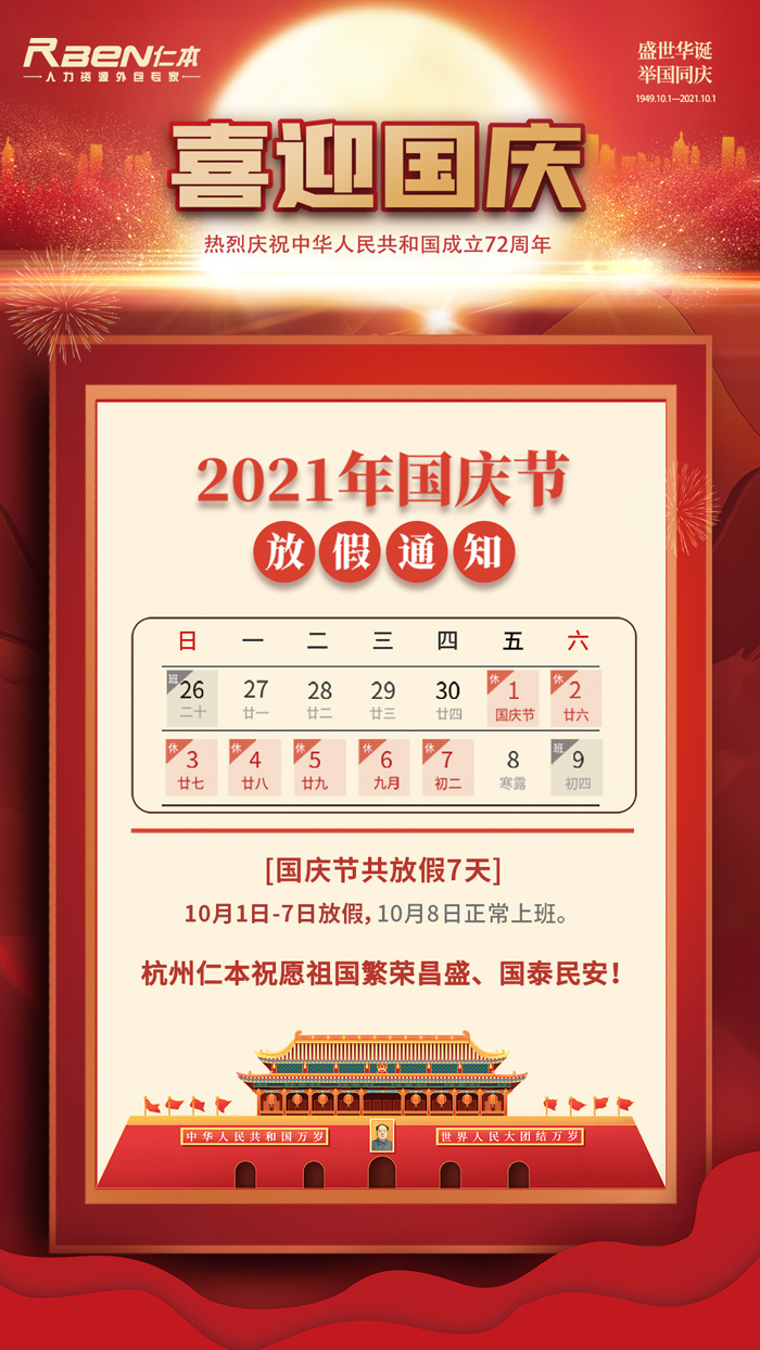 杭州仁本2021年國(guó)慶節(jié)放假通知: