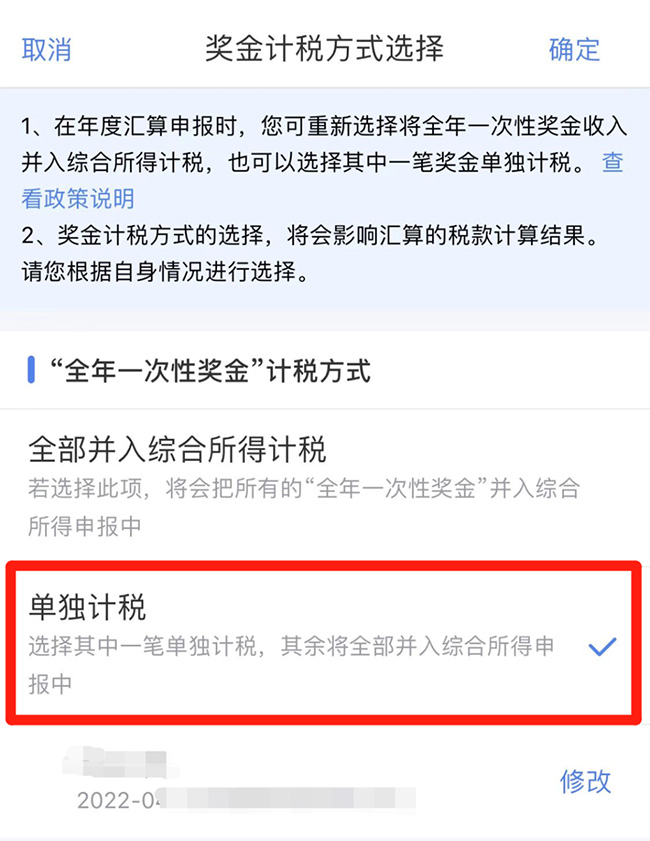 點開之后,你面臨兩個選擇:選擇單獨計稅,或選擇并入綜合所得計稅。 這兩種形式,對于很多人來說,差異巨大,也是讓很多人可以實現(xiàn)補稅變退稅的主要原因。