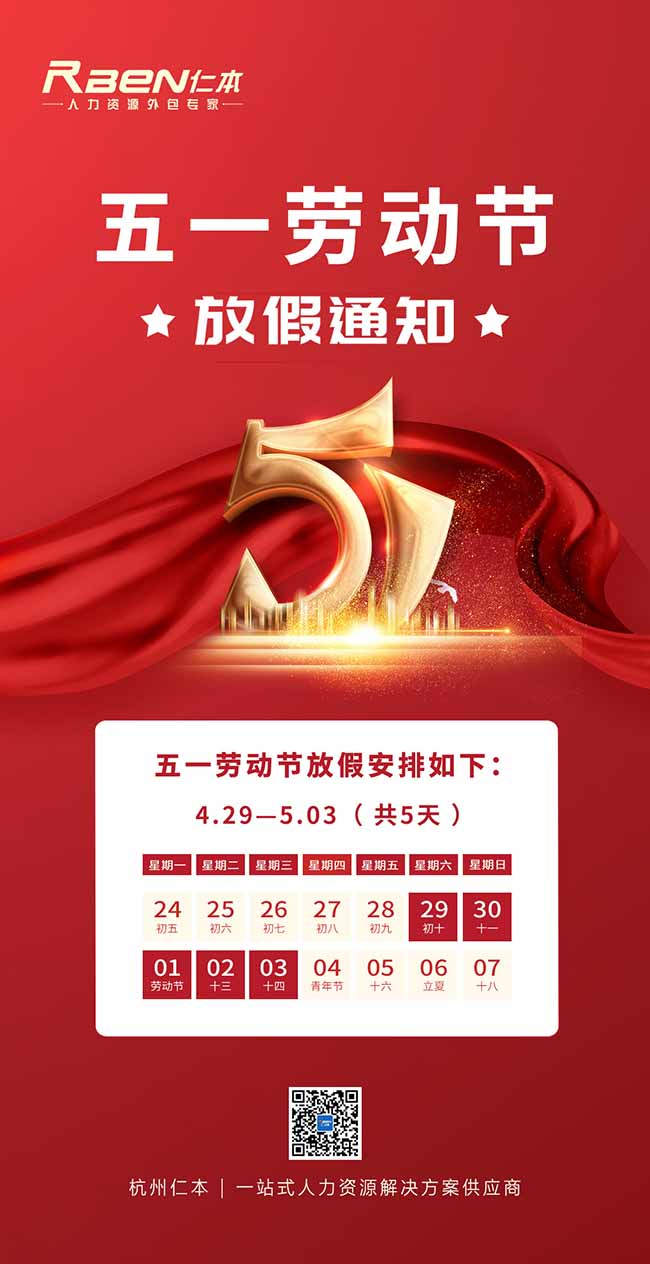 放假時間:4月29日至5月3日放假調(diào)休,共5天。5月4日正常上班。