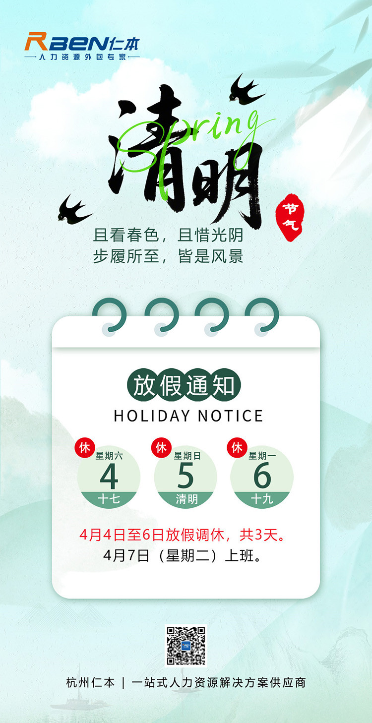 2026年清明節杭州仁本放假安排