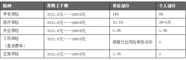 01、社保繳費基數上下限基本確定 此前,國務院決定調低社保繳費基數標準,即各地由過去依據城鎮非私營單位在崗職工平均工資,改為以本省城鎮非私營單位和私營單位加權計算的全口徑就業人員平均工資,核定繳費基數上下限,使繳費基數降低。 仁本小編了解到,浙江省在崗職工平均工資統計口徑,其實已按以上標準執行。因此,杭州社保基數上下限的核定口徑預計不會改變。 杭州社保基數上下限的確定規則為:參保職工社會保險繳費基數下限為上年度全省職工月平均工資的60%,上限為上年度全省職工月平均工資的300%。因此,我們推測今年7月左右公布的杭州社保繳費基數上下限為3321.6元——16608元。而接下來杭州的企業社保基數比例可能將會調整為:
