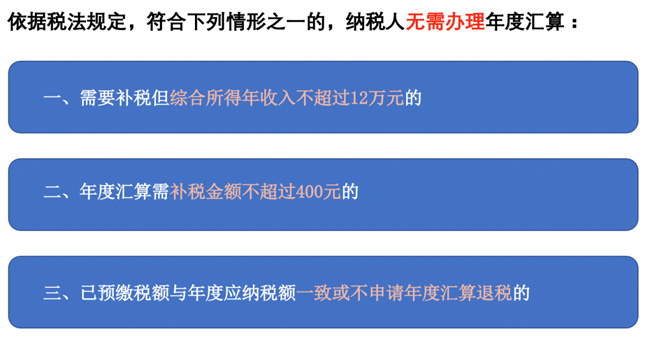 依據政策,符合規定的情形需辦理年度匯算進行退稅或補稅。