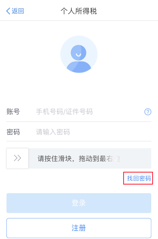 2、登錄個人所得稅APP打開個人所得稅APP 后顯示首頁頁面,點擊【個人中心】-【登錄/注冊】,可憑注冊的手機號碼/證件號碼作為賬號進行登錄。