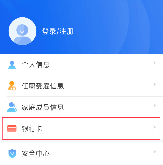 4、添加銀行卡為方便您補稅或者退稅,在【個人中心】模塊下的【銀行卡】,點擊下方“添加”,按照步驟完成銀行卡添加。