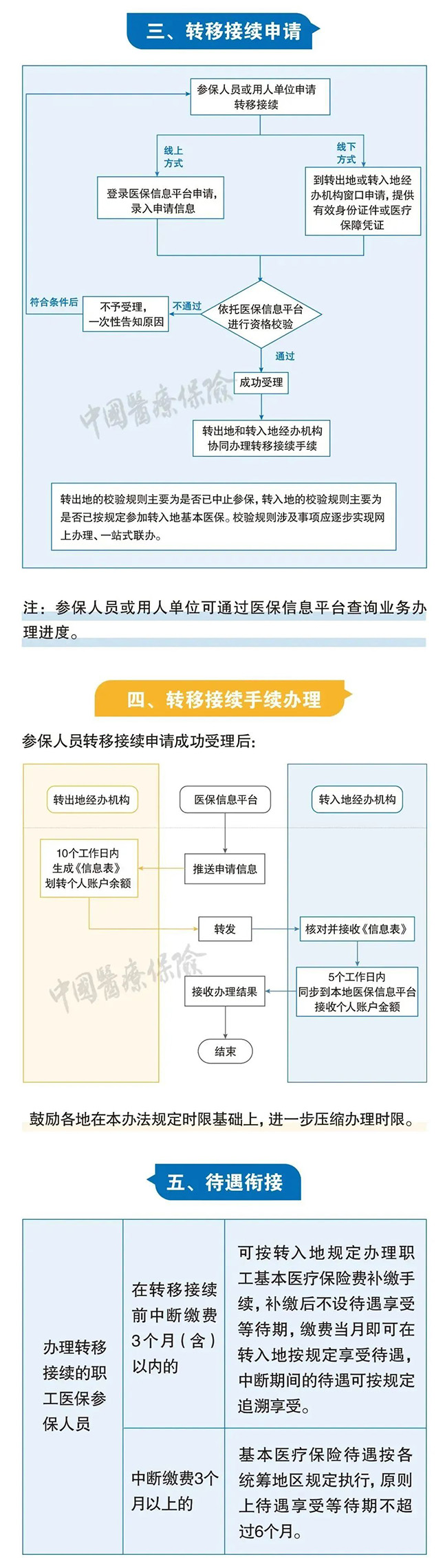 04 換城市、換工作,社保轉移這樣辦! 一、社保轉移合并辦理辦法 在轉出地已停保,在轉入地已參保,并且有繳費記錄,男性<50歲,女性<40歲,才能跨省轉移。 二、醫(yī)保轉移 醫(yī)保的聯網通辦程度不如社保,為進一步加強基本醫(yī)保關系轉移接續(xù)管理,促進參保人員基本醫(yī)保待遇連續(xù)享受,2021年12月1日起,《基本醫(yī)療保險關系轉移接續(xù)暫行辦法》正式實施。 在這個文件中,對醫(yī)保關系的轉移接續(xù),在全國層面上統一了經辦流程,規(guī)范了待遇銜接。看完這張圖,大家就能搞懂醫(yī)保的轉移接續(xù)啦~