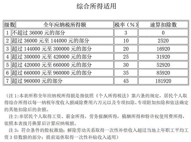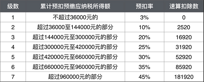 61號公告:以納稅人在本單位截至當前月份工資、薪金所得累計收入減除累計免稅收入、累計減除費用、累計專項扣除、累計專項附加扣除和累計依法確定的其他扣除后的余額為累計預扣預繳應納稅所得額,適用個人所得稅預扣率表一(見下表):