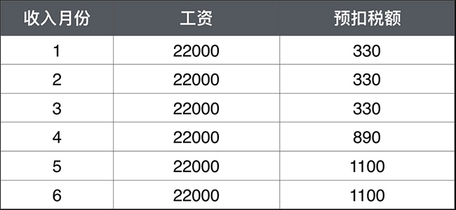 通過計算得出,小王1-3月稅率為3%,每月個稅額為330元,4月開始稅率變為10%,個稅開始上漲,4月個稅890元,5-6月個稅1100元。(附:各月稅率匯總表)